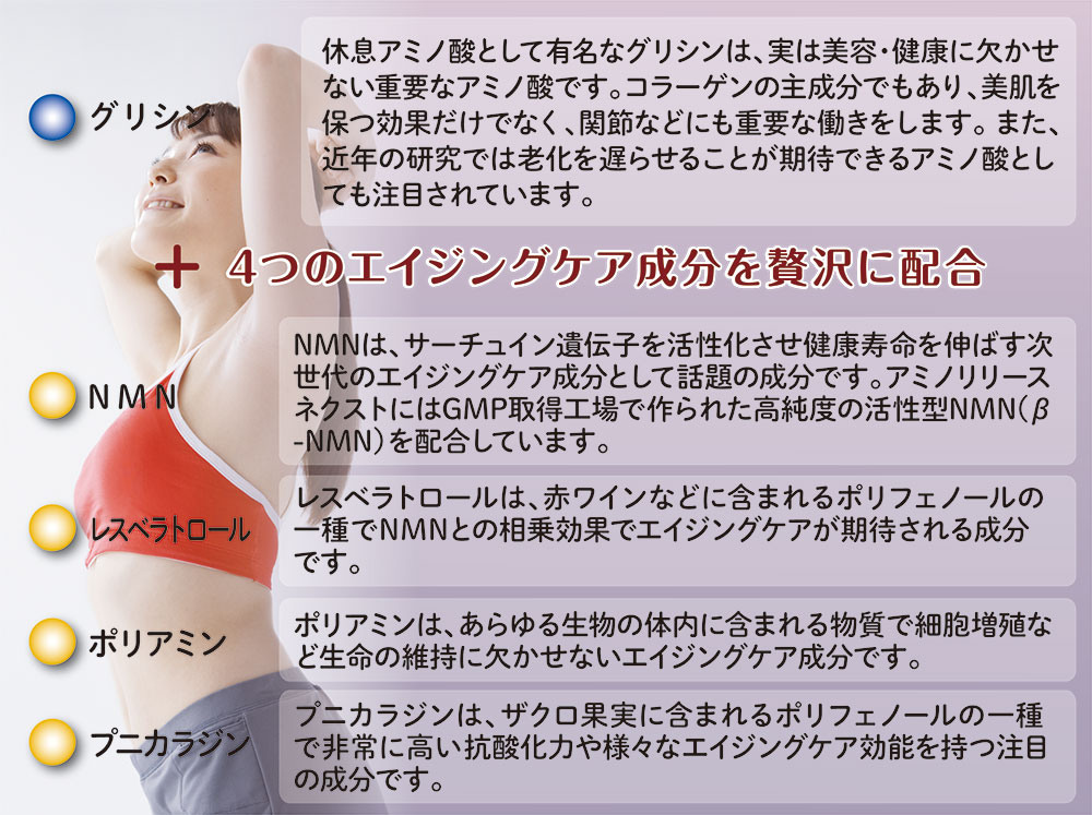 アミノ酸のグリシンに4つのエイジングケア成分を配合